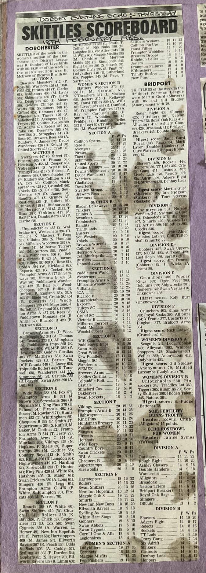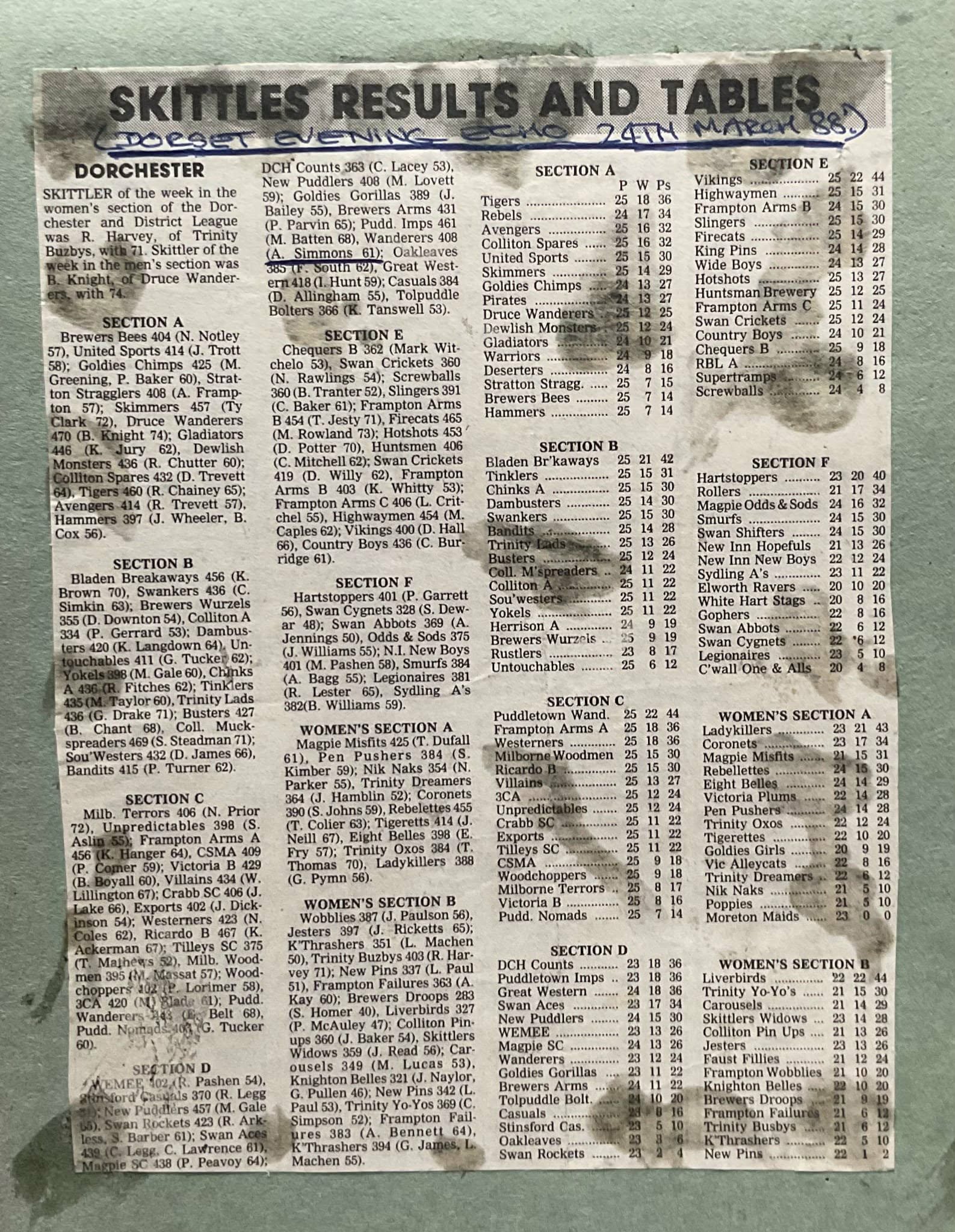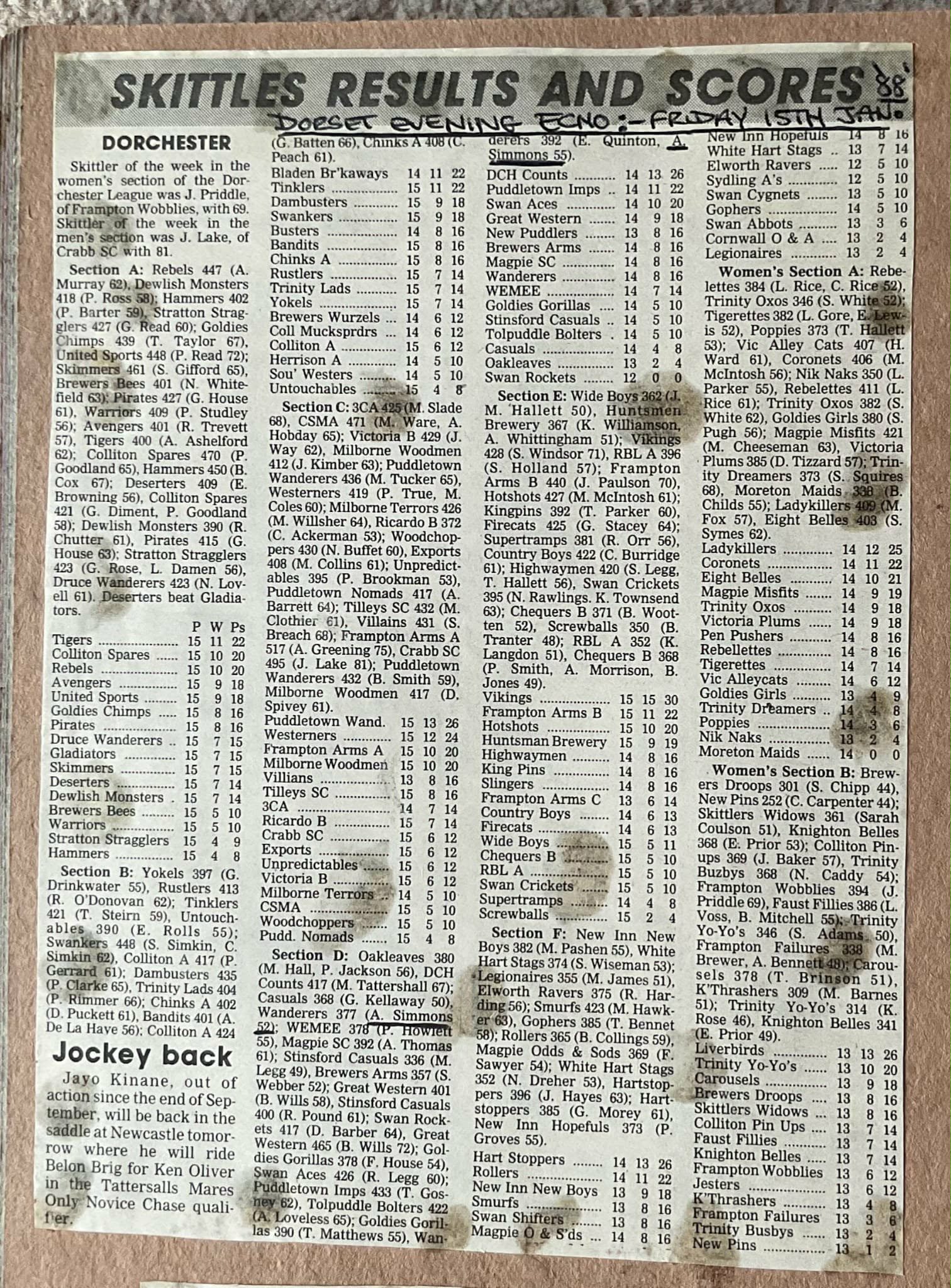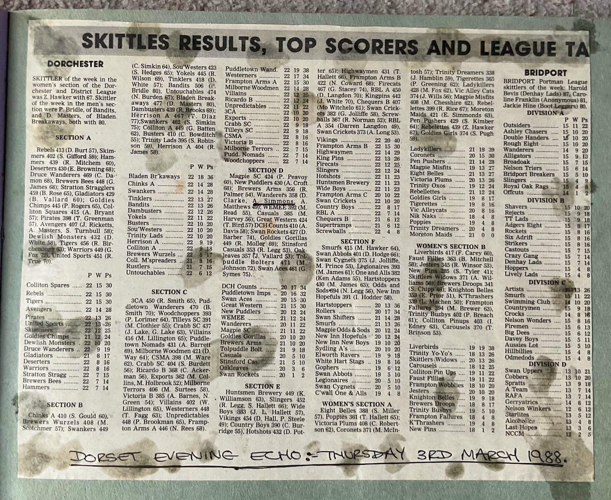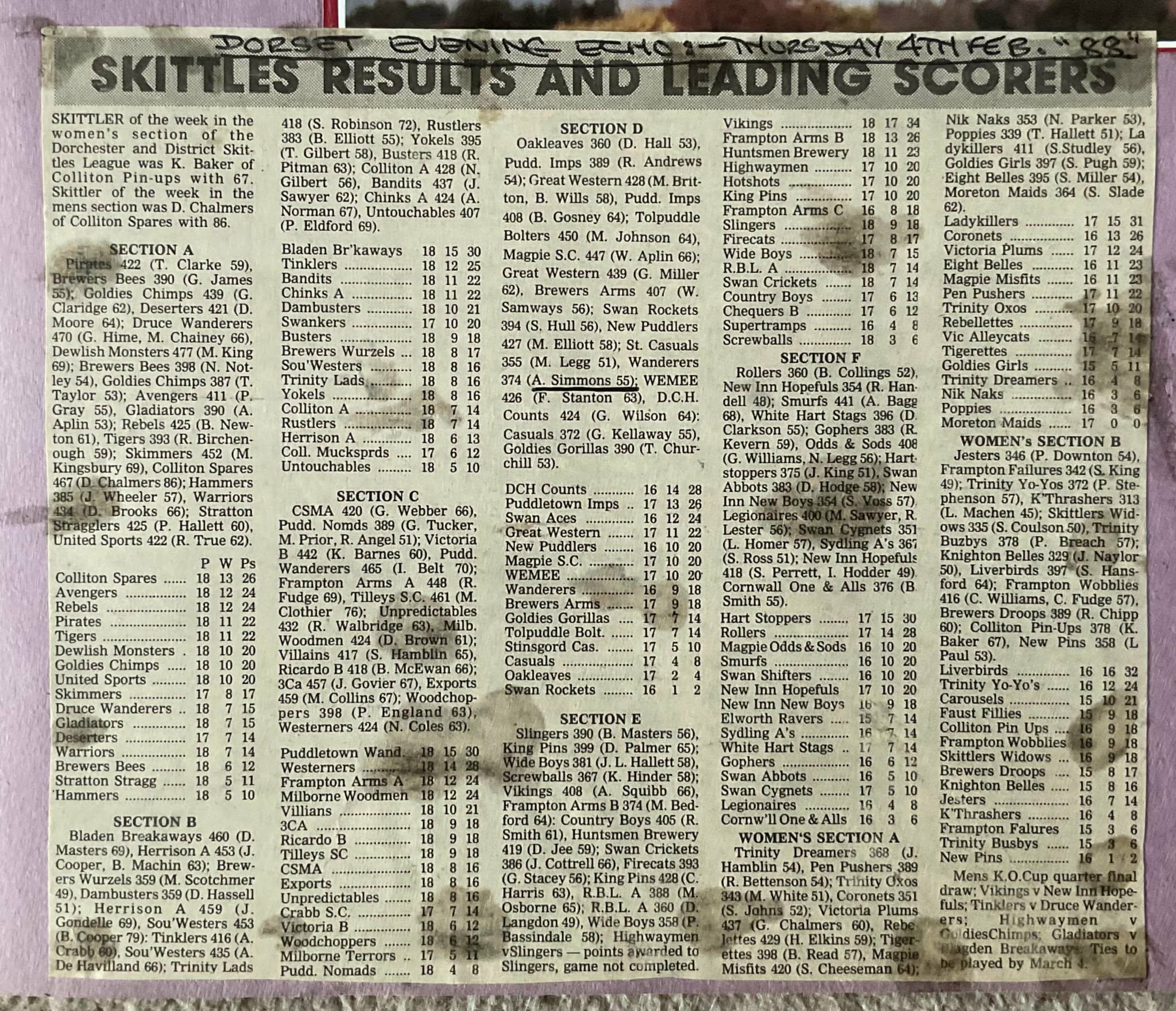 Supertramps – Rob Orr’s stagnight in 1989. Rob had two floppers in the match. Back Row (from left): Tad Clothier, Weed Ruffell, Cluck Clothier, Andy Baker.