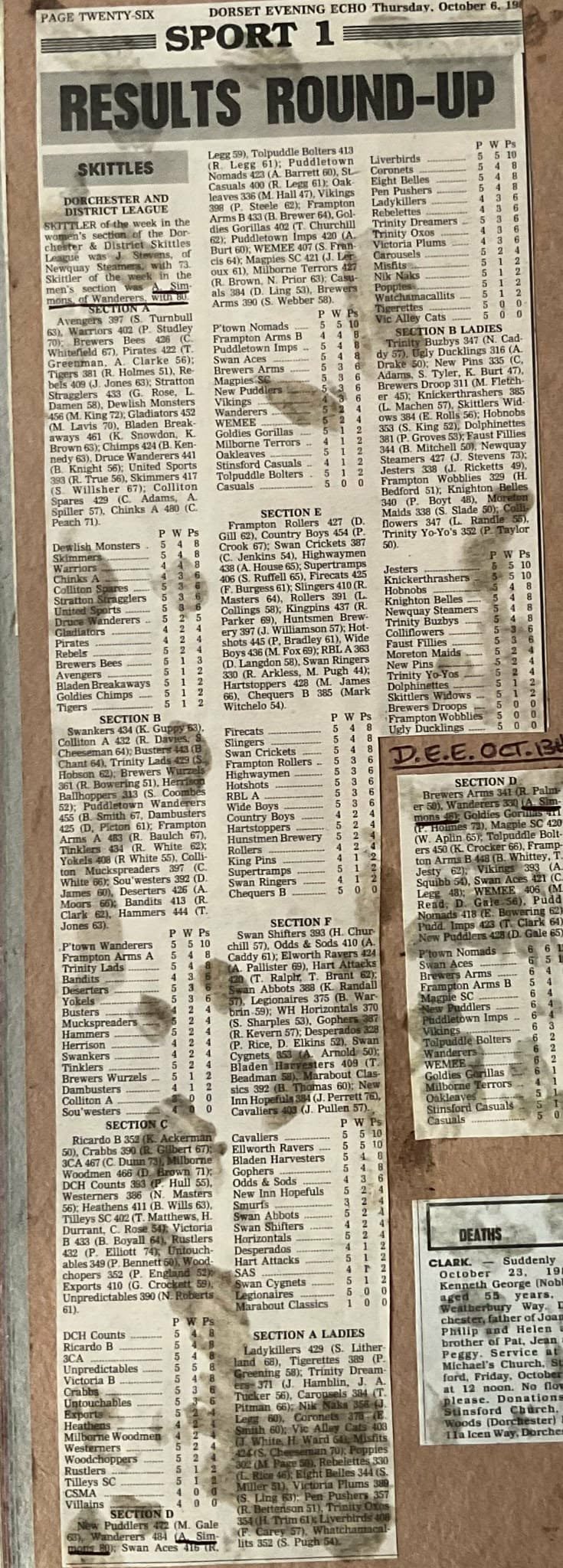 Rebels Section A champions 79-80 Brian Welch, Frank Brown, Mike King, Alan Murray, Derek Burt, Brian Newton, John Ricketts, Brian Gundry, Nick Barber.