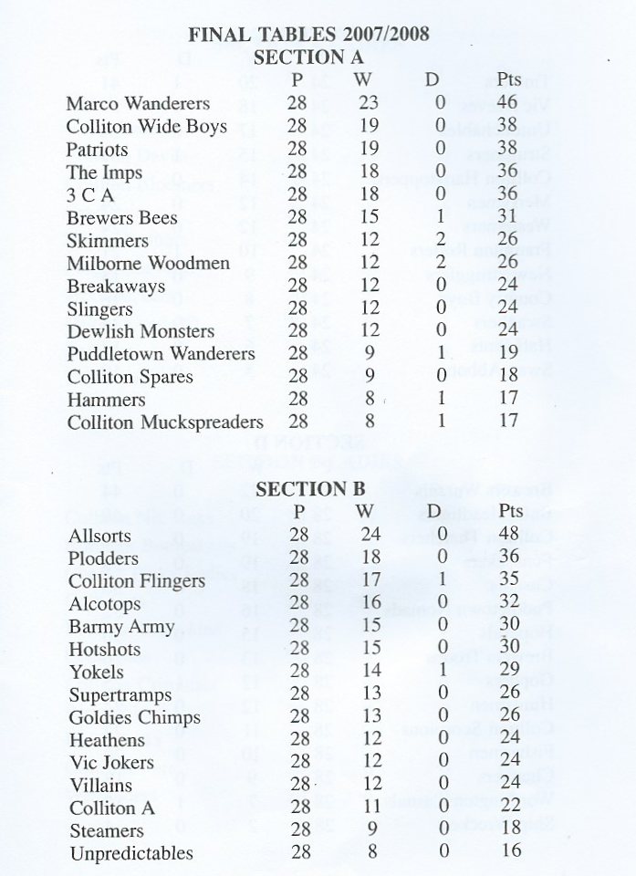 Dorchester & District Skittle League | Skittle fixtures results and tables