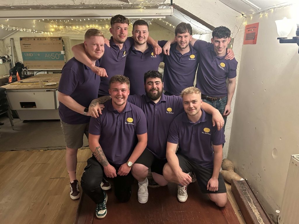 The Wafflers champions of Section C season 24-25Wareham Legionaires champions of Section A in seasons 23-24 and 24-25The penultimate match of the final ladies season in 2025 saw Vixens clinch their second successive title and Crackerjacs finish runners-up for the second season running.Vixens – Ladies League champions 23-24 and 24-25Woodpeckers at their last Ladies League match with past and present players from their 30 years as a teamProstate Cancer UK support comes to Dorchester Skittles League via Puddletown Nomads.Strugglers 2024Colliton Imps 2024Our two eldest teams met at the Bladen Club in March 2024 to celebrate Puddletown Wanderers 70th anniversary. Both Puddletown Wanderers and Puddletown Nomads appeared in the 1954-55 league fixture book, and both used the Kings Arms Puddletown as their home alley.Strugglers of Section D 2021-22